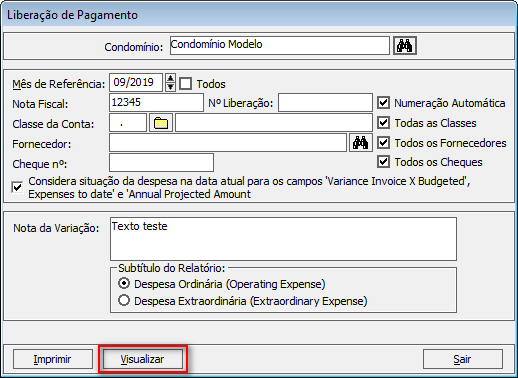 O relatório Liberação de Pagamento possui identificação automática dos usuários aprovadores dos pagamentos das despesas, bem como seu usuário criador.