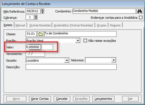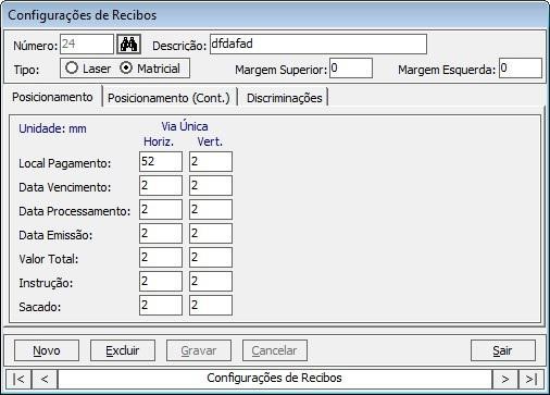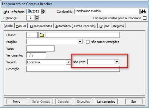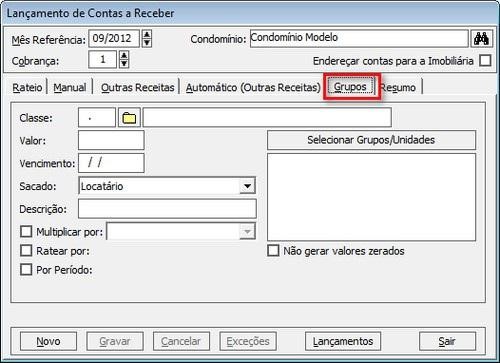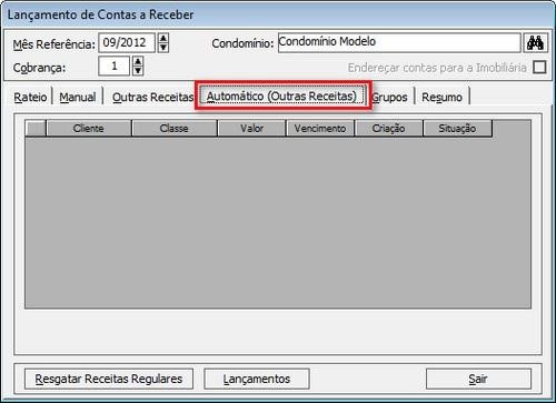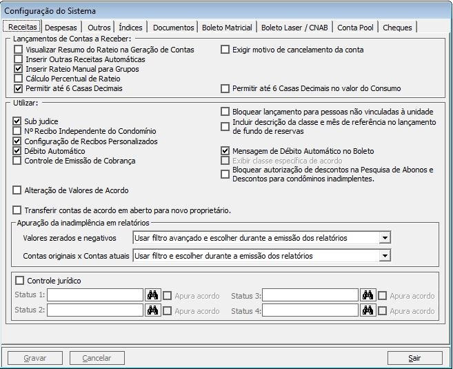 Nesta aba será possível definir todos os parâmetros referentes ao lançamento de contas a receber.
