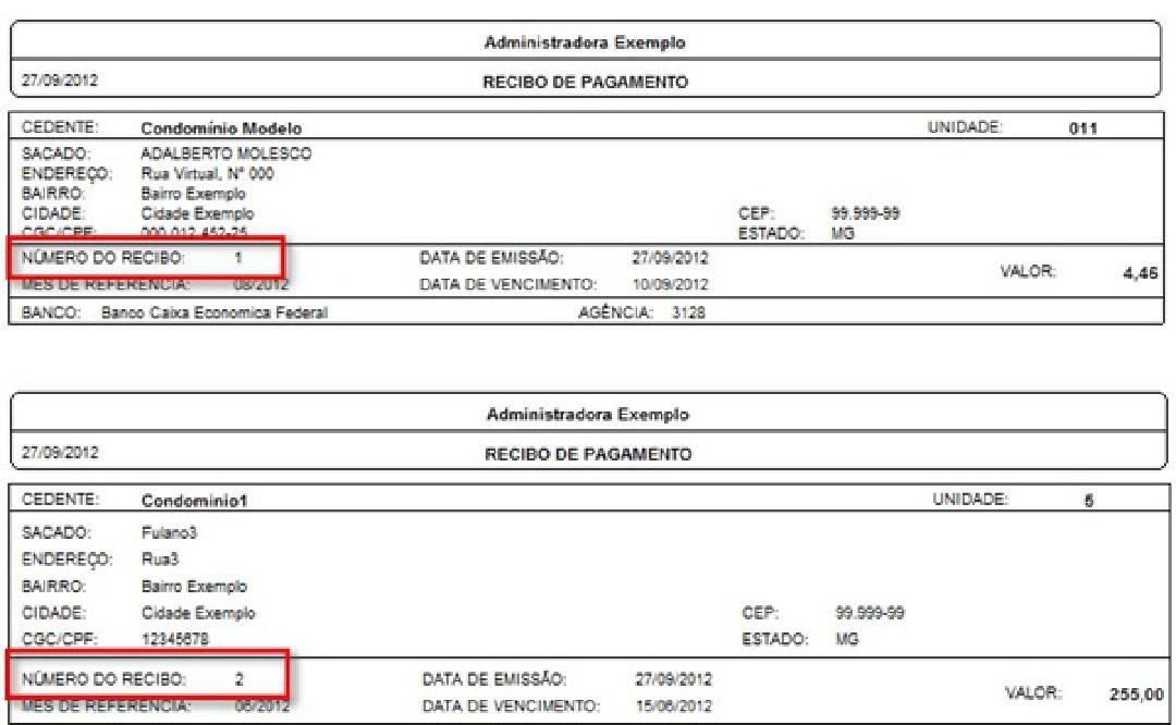Se no Condomínio A o recibo tiver o número 10, no Condomínio B o próximo recibo impresso terá o número 11.