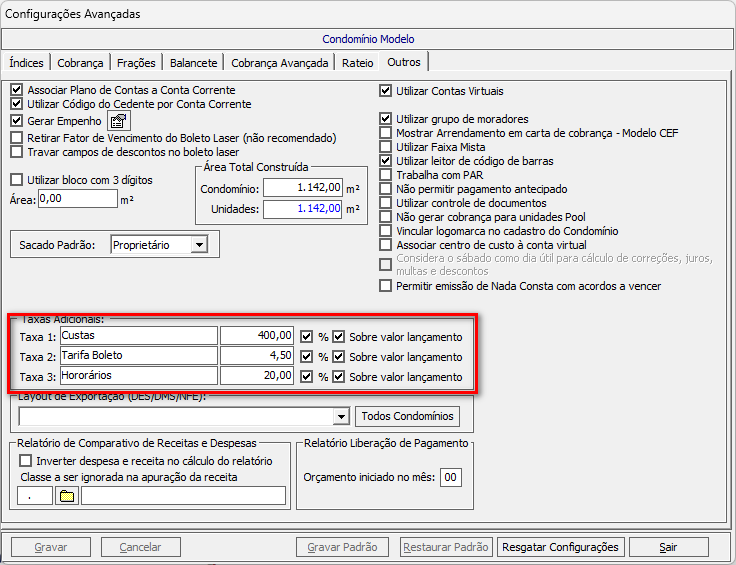 Para evitar erros no momento de calcular Taxas Adicionais usando o Modelo 5, o Condomínio21 passou a marcar automaticamente a opção “Sobre valor do lançamento” sempre que esse modelo estiver selecionado para o condomínio.