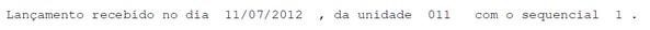 Lançamento recebido no dia «DATA DE PAGAMENTO», da unidade «UNIDADE» com o sequencial «SEQUENCIAL AUTENTICAÇÃO».