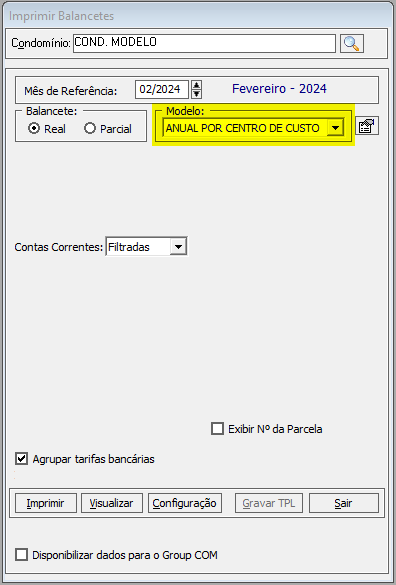- O agrupamento por centro de custo ficará disponível para o balancete real e parcial.