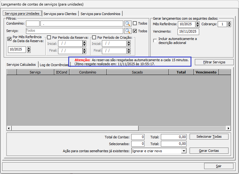 Agora, esse processo ficou muito mais simples: você passa a fazer apenas o lançamento dos serviços, porque o sistema já busca e deixa todas as reservas disponíveis automaticamente.