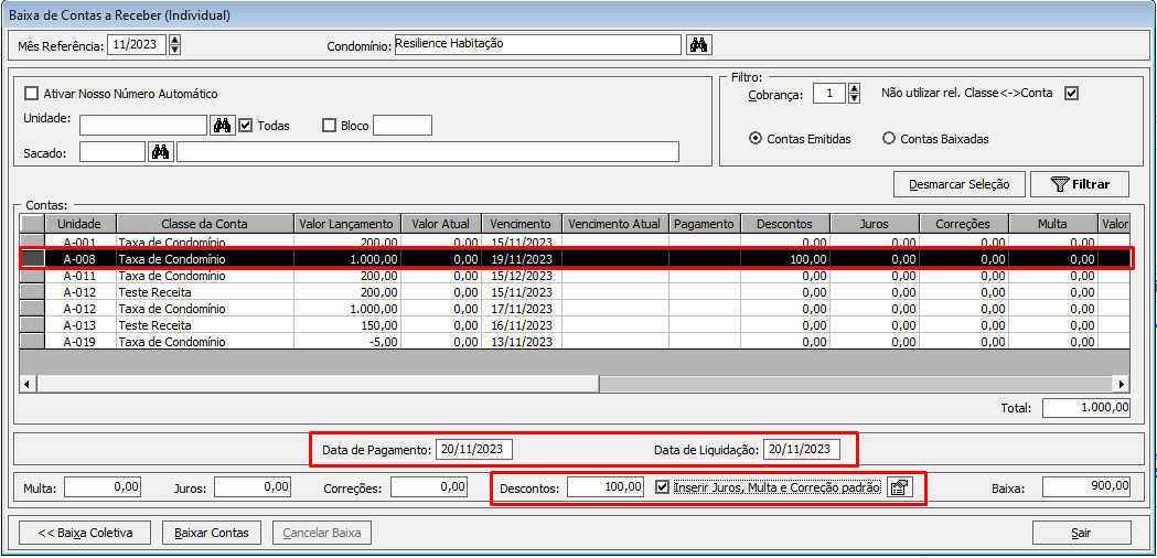 A partir desta versão do Condomínio21 os descontos cadastrados no sistema passam a ser considerados na baixa de títulos cujos vencimentos são no sábado, domingo e feriados.