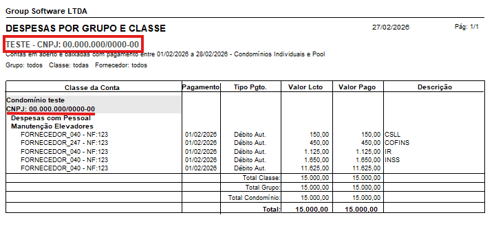 - Relatórios > Contas > Pagas por Grupo e Classe