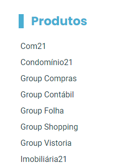 Escolha qual produto deseja ver as novidades no lado direito da tela.