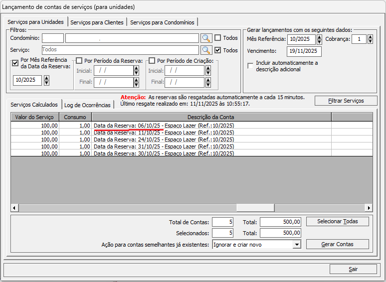 Os lançamentos de serviços gerados pelas reservas já virão com a descrição contendo a data da reserva.