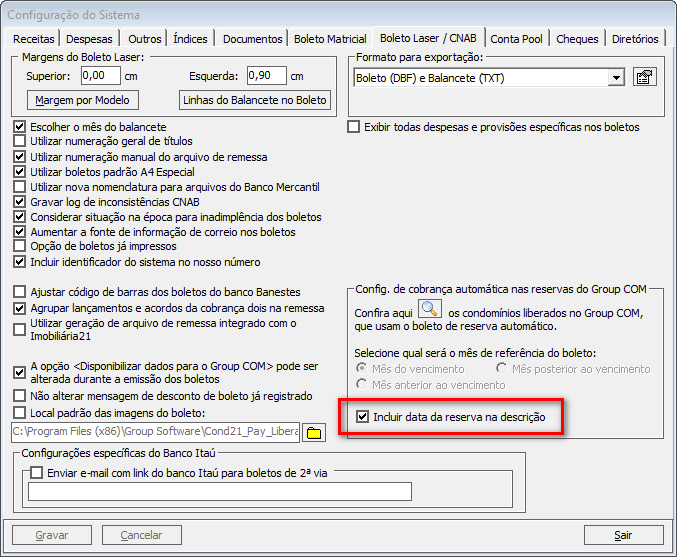 Uma nova opção foi adicionada às Configurações do Sistema: Inserir data da reserva na descrição