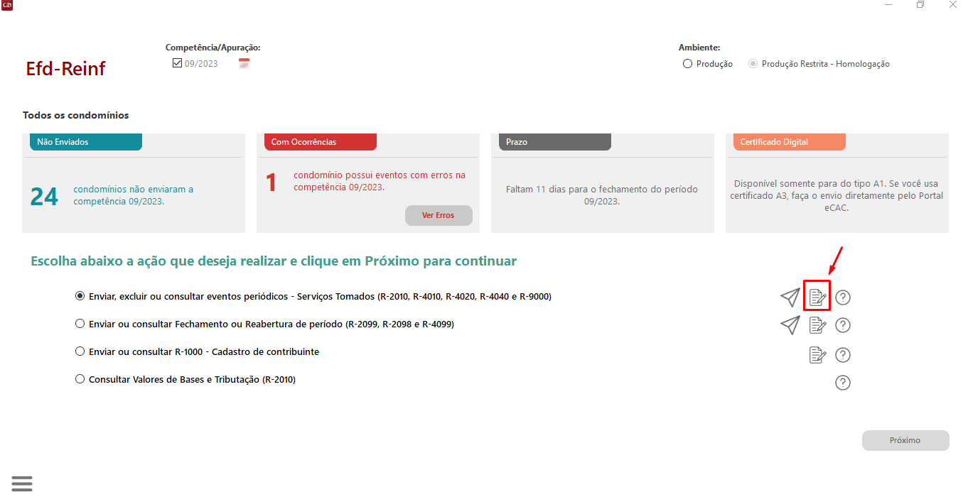 - A Group Software está trabalhando para que o envio dos eventos da EFD-REINF, utilizando o certificado do tipo A3, para os eventos do novo layout da Receita Federal, aconteça diretamente pelo Condomínio21, para as competências futuras, diferentes do mês 09/2023.