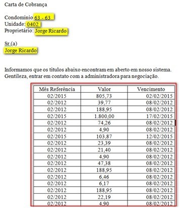 Carta de cobrança