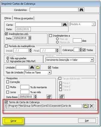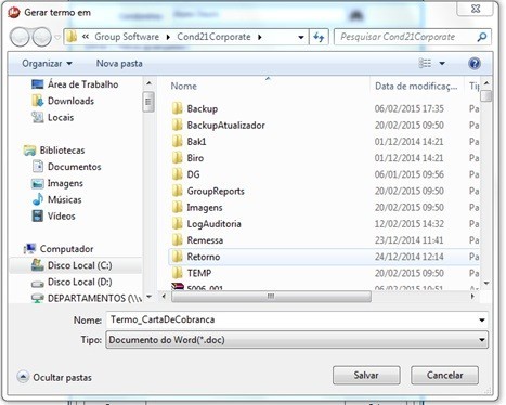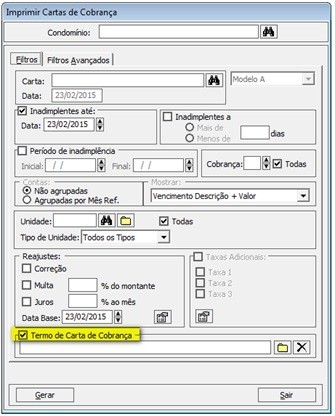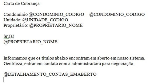 A fim de facilitar o processo de emissão de Comunicado e Carta de Cobrança, existem modelos pré-existentes* de Termos que poderão ser gerados com os dados pessoais que constam no banco de dados. O processo segue a mesma forma como é feito o Termo de Confissão de Dívida nos Acordos.