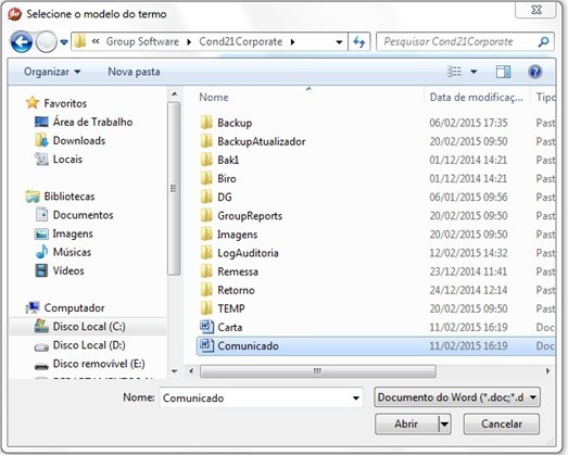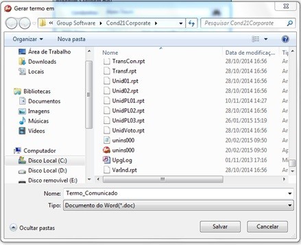 Estes modelos estão localizados na pasta no qual o Condomínio21 está instalado