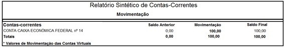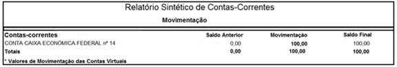 no período de xxxx a xxxx, o relatório apresentará o valor de R$ 100,00. Quando o filtro for por