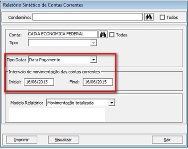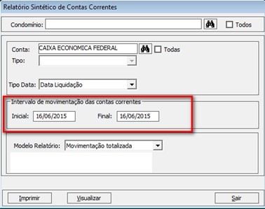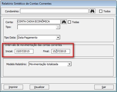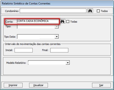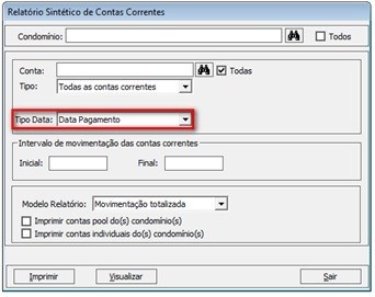 A fim de flexibilizar a apresentação dos valores do saldo da conta corrente, o Condomíno21 possui um filtro na tela de Relatório Sintético de Conta Corrente - “