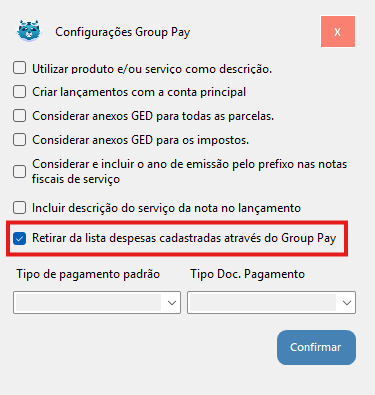 - Acesse o menu Módulos -> Contas a Pagar -> Group Pay.