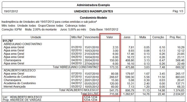 Exemplo: o condômino liquidou as contas em acordo na data 30/07, ao filtrar a inadimplência pela data 01/07, o sistema irá apresentar as contas inadimplentes desse condômino mesmo estando elas baixadas, ou seja, o sistema apresenta a situação do condômino naquela época.
