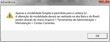 - Para a carteira 12 somente é permitido que a modalidade Simples seja a selecionada.