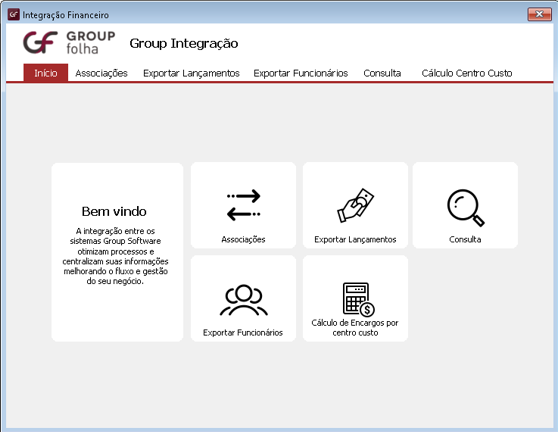 Para isso, acesse menu Arquivo > Ferramentas de administração > Aba Manutenção > Integração Group Folha.