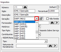selecionado para o imposto (Se Condomínio ou Fornecedor).