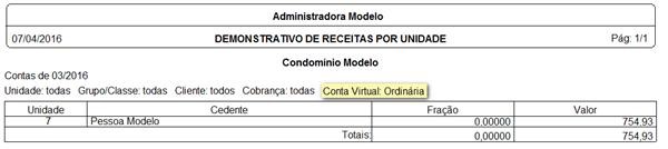 . Quando habilitado, ele irá apresentar os lançamentos referentes a contas virtuais, seja por uma única conta ou por todas aquelas pertencentes a administradora.