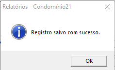 Nela escolha os filtros desejados para gerar o relatório, e por fim clique no botão Gravar. Será mostrada a mensagem de que a gravação ocorreu com sucesso. Clique no botão [OK] para finalizar e siga os demais passos para gravação final do modelo da pasta.