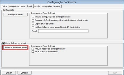 Cadastrar modelo de e-mail