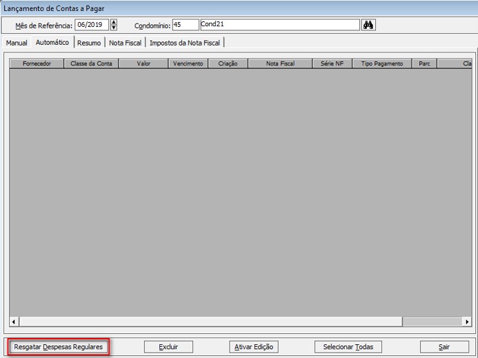 Clique no botão Resgatar Despesas Regulares.